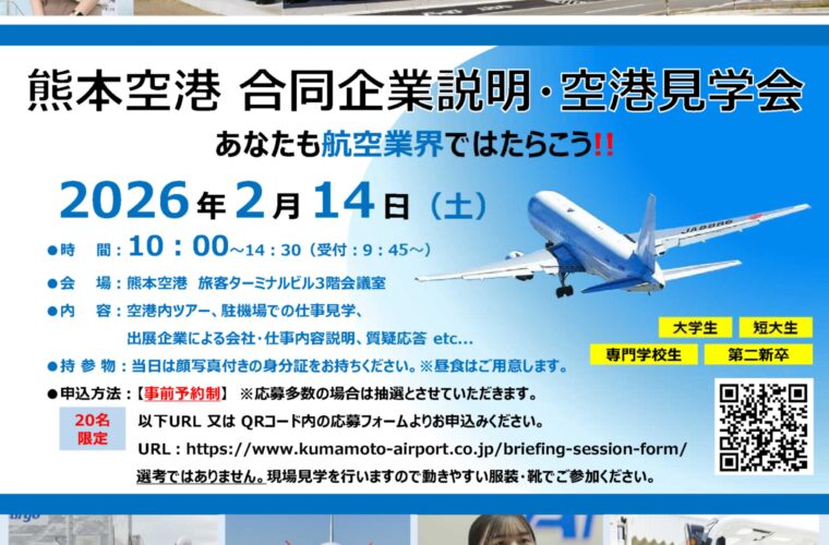 2月14日(土)合同企業説明・見学会in阿蘇くまもと空港の開催について