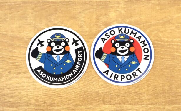 阿蘇くまモン空港 旅客ターミナルビル内にある土産店「ASORA」では、「かモン!くまモン!阿蘇くまモン空港キャンペーン」のオリジナルロゴステッカーを販売中!