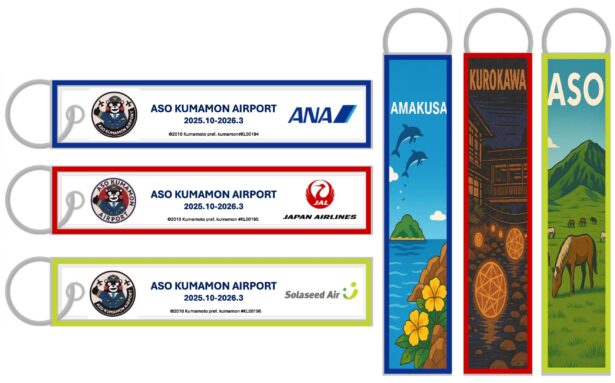 各エアラインのロゴごとに、「天草」「黒川」「阿蘇」をテーマにしたご当地デザインが