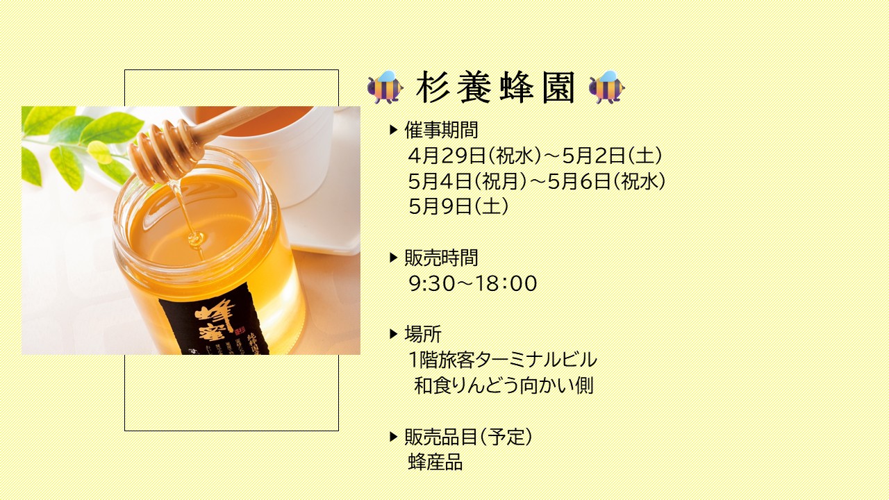 3階搭乗待合エリア(保安検査場通過後)に店舗を構える「杉養蜂園🐝」が、