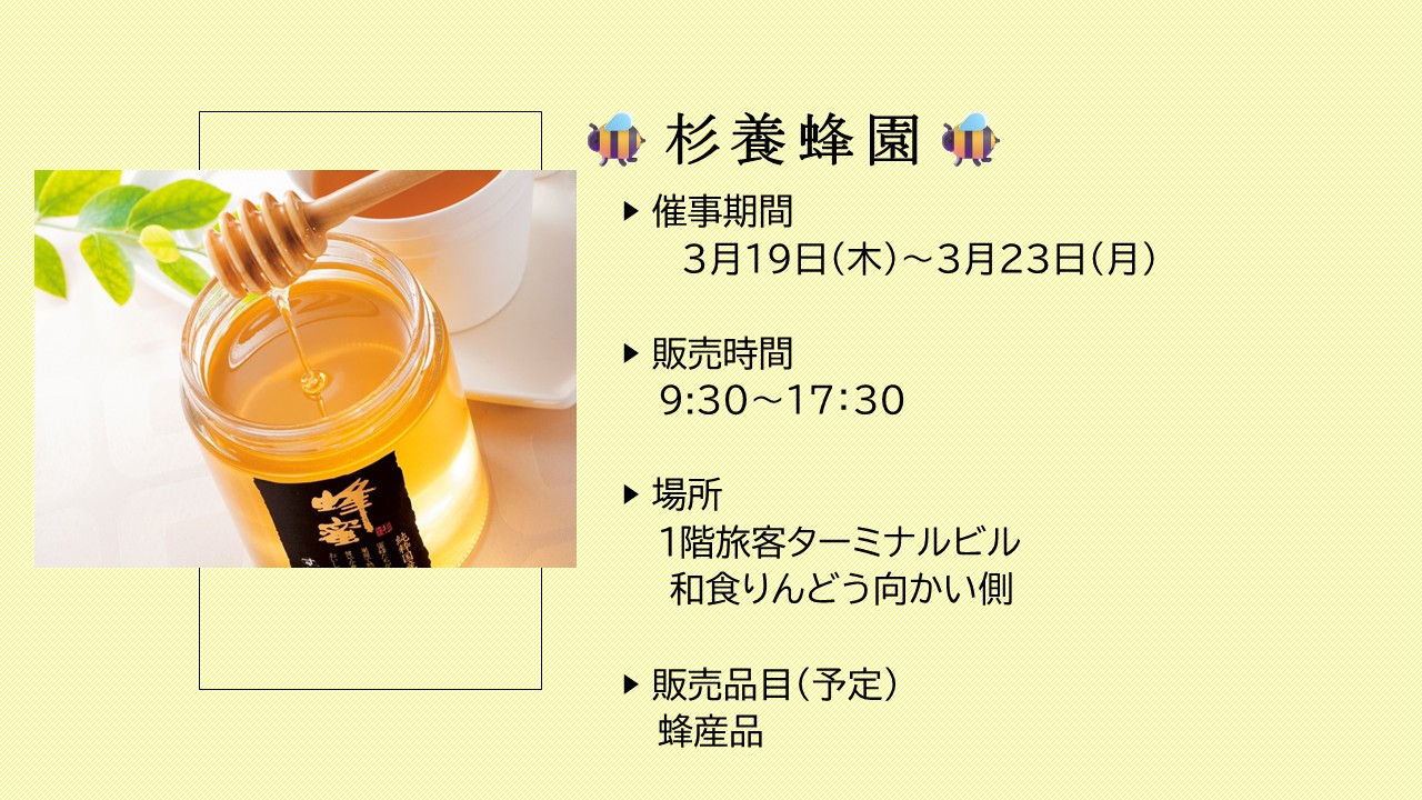 3階搭乗待合エリア(保安検査場通過後)に店舗を構える「杉養蜂園🐝」が、