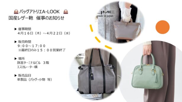 🌸【催事】バッグアトリエA-LOOK催事販売のお知らせ🛫