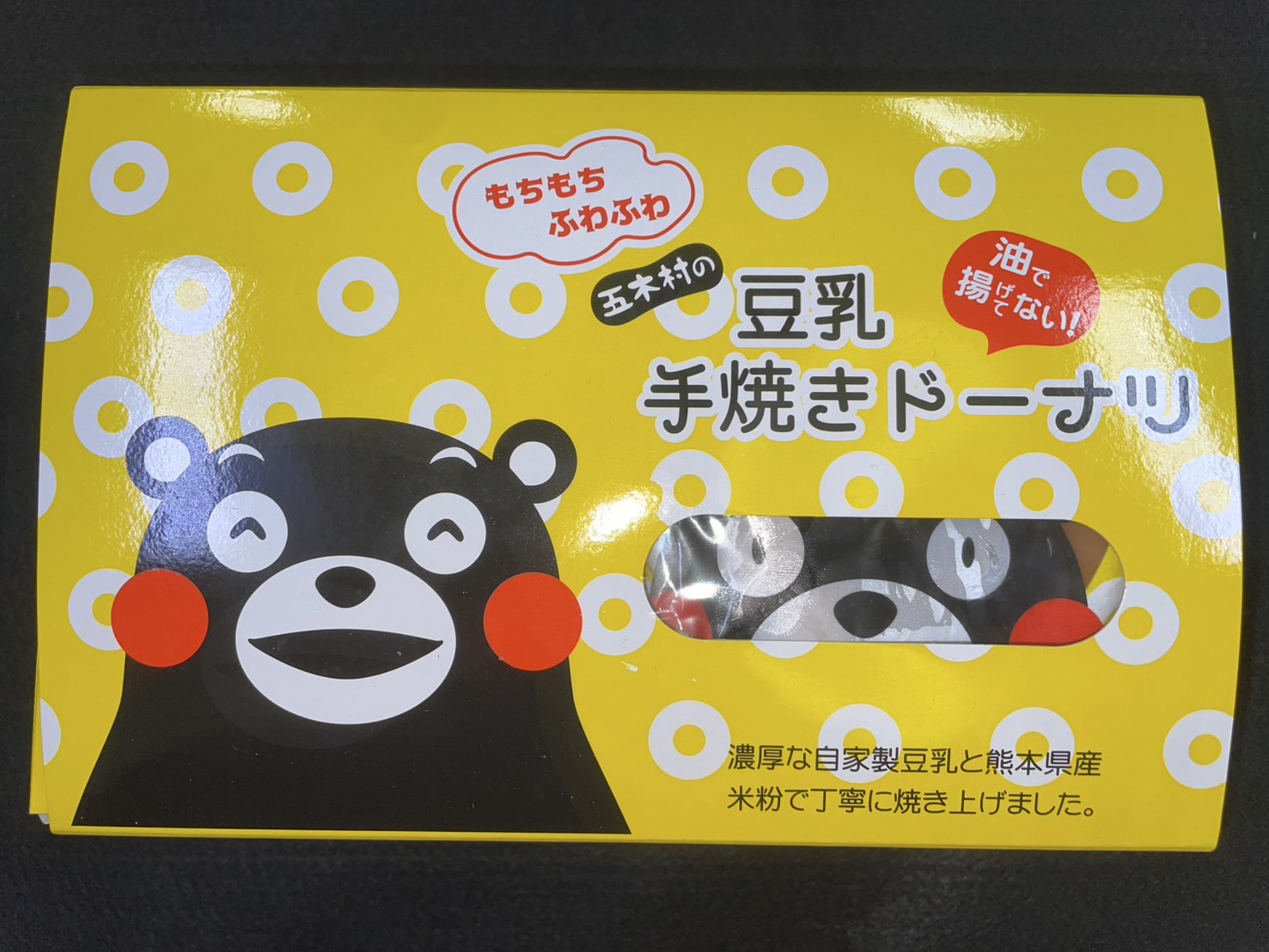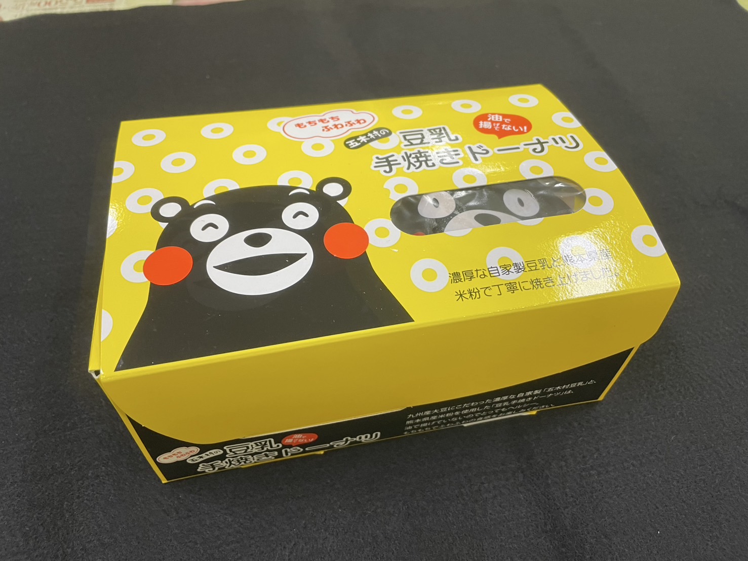 こちらを覗くくまモンがかわいらしい箱に仕上げました🍩✨
