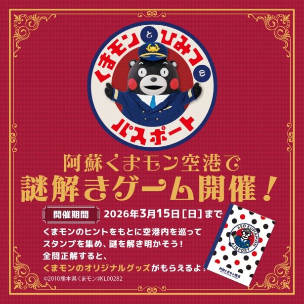 สนามบินอาโซะคุมามอนกำลังจัดเกมไขปริศนาชื่อ "คุมามอนกับพาสปอร์ตลับ" จนถึงวันที่ 15 มีนาคม